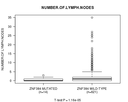 ZNF384 mutation correlated to 'NUMBER.OF.LYMPH.NODES'.
