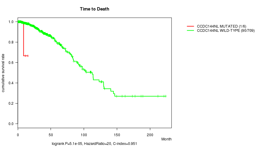 Table S6. Gene #28: 'CCDC144NL MUTATION STATUS' versus Clinical Feature #1: 'Time to Death'