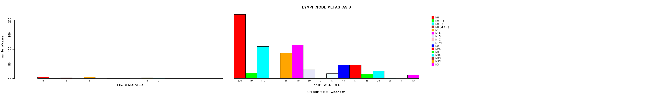 PIK3R1 mutation correlated to 'LYMPH.NODE.METASTASIS'.