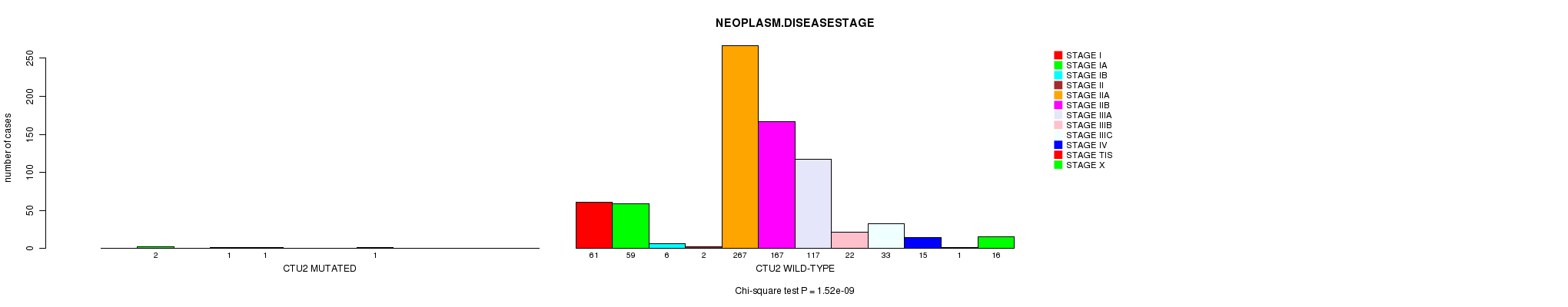CTU2 mutation correlated to 'NEOPLASM.DISEASESTAGE'.