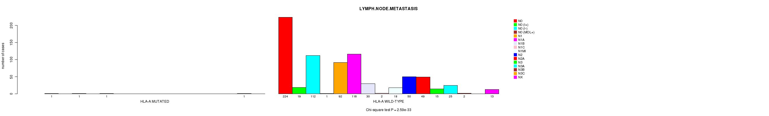 Figure S12. Get High-res Image Gene #52: 'HLA-A MUTATION STATUS' versus Clinical Feature #6: 'LYMPH.NODE.METASTASIS'