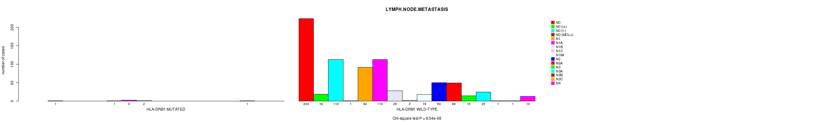 HLA-DRB1 mutation correlated to 'LYMPH.NODE.METASTASIS'.