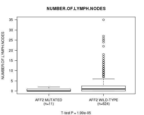 AFF2 mutation correlated to 'NUMBER.OF.LYMPH.NODES'.
