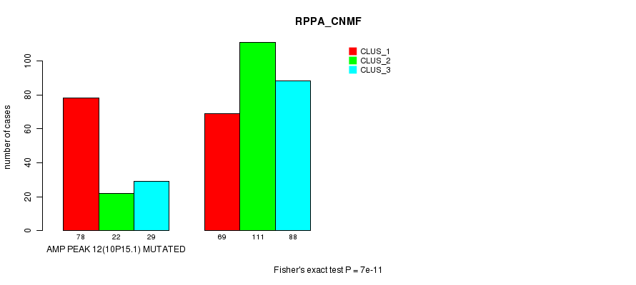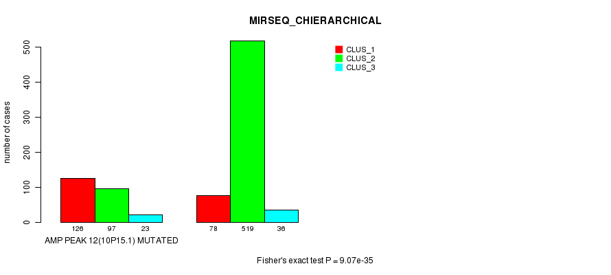 Amp Peak 12(10p15.1) cnvs correlated to 'MRNA_CNMF', 'MRNA_CHIERARCHICAL', 'CN_CNMF', 'METHLYATION_CNMF', 'RPPA_CNMF', 'RPPA_CHIERARCHICAL', 'MRNASEQ_CNMF', 'MRNASEQ_CHIERARCHICAL', 'MIRSEQ_CNMF', and 'MIRSEQ_CHIERARCHICAL'.