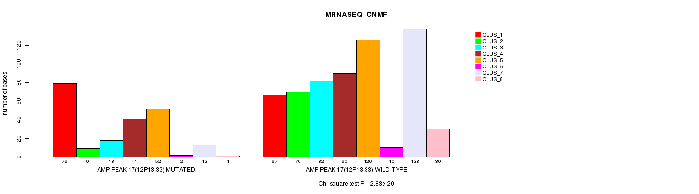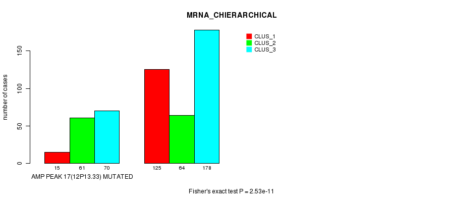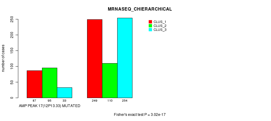 Amp Peak 17(12p13.33) cnvs correlated to 'MRNA_CNMF', 'MRNA_CHIERARCHICAL', 'CN_CNMF', 'METHLYATION_CNMF', 'RPPA_CNMF', 'RPPA_CHIERARCHICAL', 'MRNASEQ_CNMF', 'MRNASEQ_CHIERARCHICAL', 'MIRSEQ_CNMF', and 'MIRSEQ_CHIERARCHICAL'.