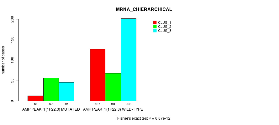 Amp Peak 1(1p22.3) cnvs correlated to 'MRNA_CNMF', 'MRNA_CHIERARCHICAL', 'CN_CNMF', 'METHLYATION_CNMF', 'RPPA_CNMF', 'RPPA_CHIERARCHICAL', 'MRNASEQ_CNMF', 'MRNASEQ_CHIERARCHICAL', 'MIRSEQ_CNMF', and 'MIRSEQ_CHIERARCHICAL'.