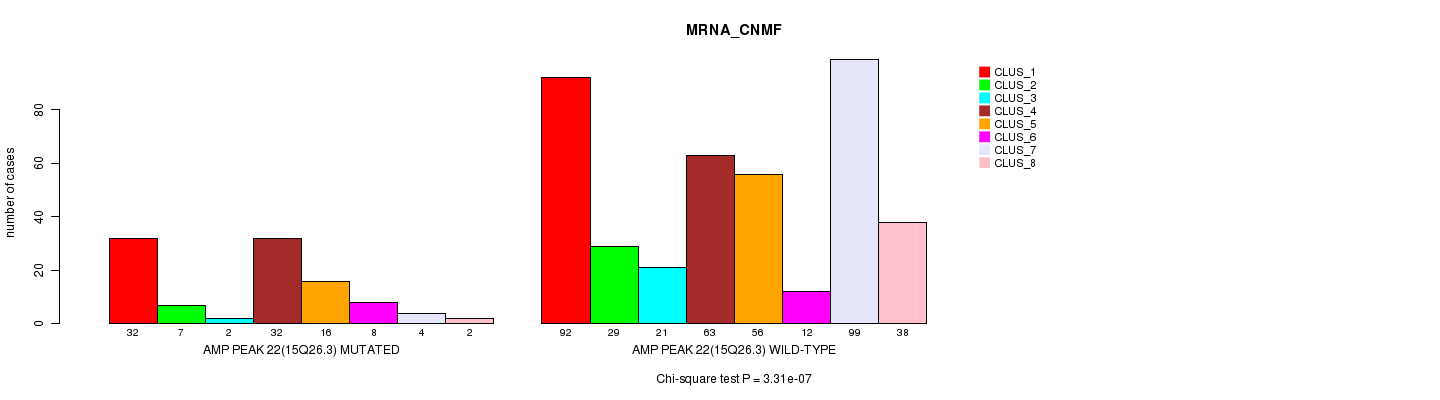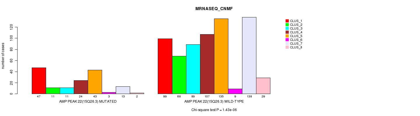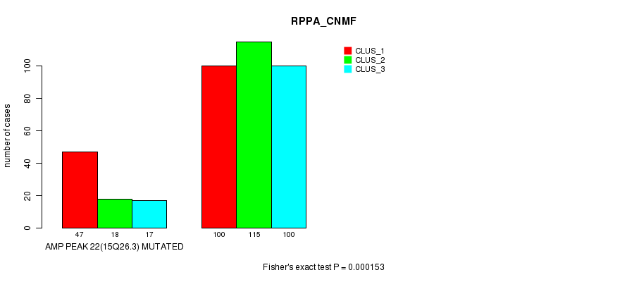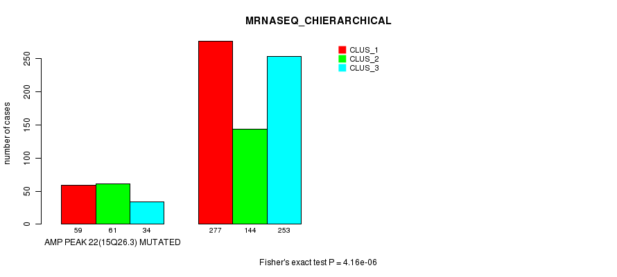 Amp Peak 22(15q26.3) cnvs correlated to 'MRNA_CNMF', 'CN_CNMF', 'METHLYATION_CNMF', 'RPPA_CNMF', 'MRNASEQ_CNMF', 'MRNASEQ_CHIERARCHICAL', 'MIRSEQ_CNMF', and 'MIRSEQ_CHIERARCHICAL'.