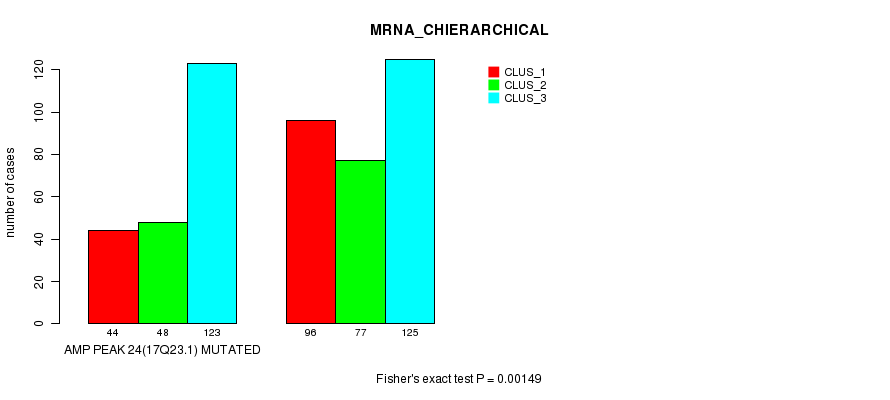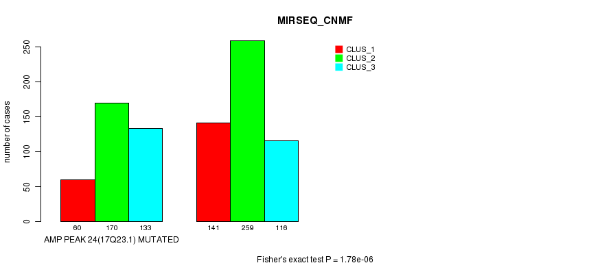 Amp Peak 24(17q23.1) cnvs correlated to 'MRNA_CNMF', 'MRNA_CHIERARCHICAL', 'CN_CNMF', 'METHLYATION_CNMF', 'MRNASEQ_CNMF', 'MRNASEQ_CHIERARCHICAL', and 'MIRSEQ_CNMF'.