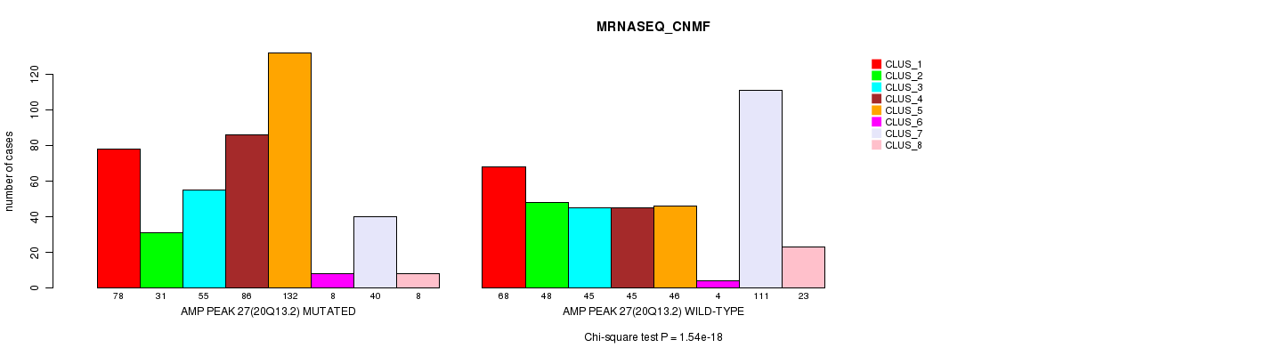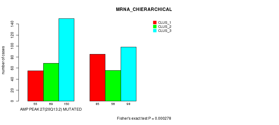 Amp Peak 27(20q13.2) cnvs correlated to 'MRNA_CNMF', 'MRNA_CHIERARCHICAL', 'CN_CNMF', 'METHLYATION_CNMF', 'RPPA_CNMF', 'MRNASEQ_CNMF', 'MRNASEQ_CHIERARCHICAL', 'MIRSEQ_CNMF', and 'MIRSEQ_CHIERARCHICAL'.