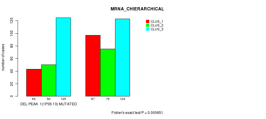 Del Peak 1(1p36.13) cnvs correlated to 'MRNA_CNMF', 'MRNA_CHIERARCHICAL', 'CN_CNMF', 'METHLYATION_CNMF', 'MRNASEQ_CNMF', 'MRNASEQ_CHIERARCHICAL', and 'MIRSEQ_CNMF'.