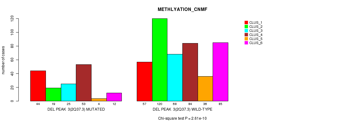 Figure S472. Get High-res Image Gene #63: 'Del Peak 36(21q11.2) mutation analysis' versus Clinical Feature #4: 'METHLYATION_CNMF'