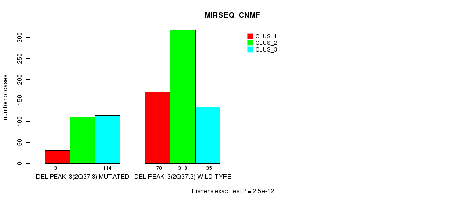 Figure S460. Get High-res Image Gene #61: 'Del Peak 34(19q13.32) mutation analysis' versus Clinical Feature #9: 'MIRSEQ_CNMF'