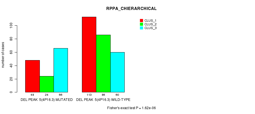 Del Peak 5(4p16.3) cnvs correlated to 'MRNA_CNMF', 'MRNA_CHIERARCHICAL', 'CN_CNMF', 'METHLYATION_CNMF', 'RPPA_CNMF', 'RPPA_CHIERARCHICAL', 'MRNASEQ_CNMF', 'MRNASEQ_CHIERARCHICAL', 'MIRSEQ_CNMF', and 'MIRSEQ_CHIERARCHICAL'.