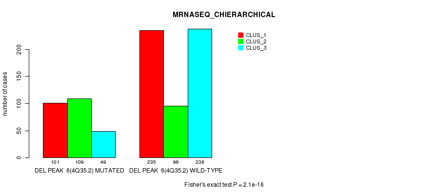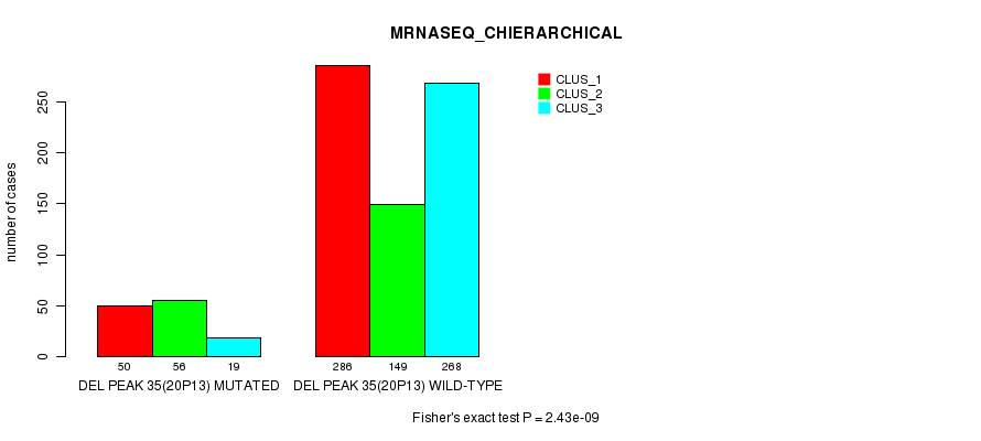 Figure S467. Get High-res Image Gene #62: 'Del Peak 35(20p13) mutation analysis' versus Clinical Feature #8: 'MRNASEQ_CHIERARCHICAL'