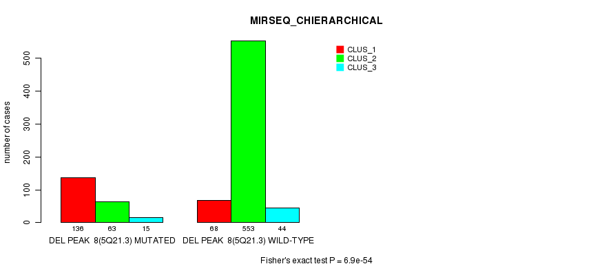 Figure S469. Get High-res Image Gene #62: 'Del Peak 35(20p13) mutation analysis' versus Clinical Feature #10: 'MIRSEQ_CHIERARCHICAL'
