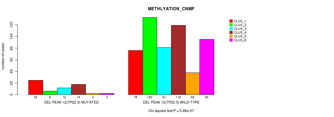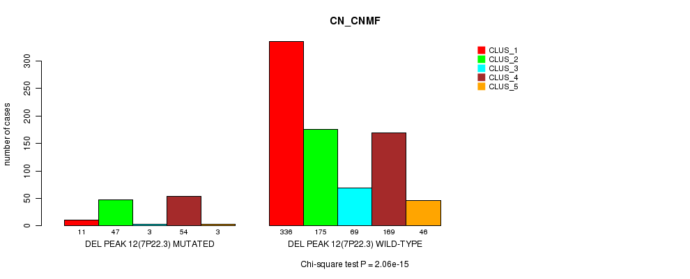 Del Peak 12(7p22.3) cnvs correlated to 'MRNA_CHIERARCHICAL', 'CN_CNMF', 'METHLYATION_CNMF', 'MRNASEQ_CNMF', 'MRNASEQ_CHIERARCHICAL', 'MIRSEQ_CNMF', and 'MIRSEQ_CHIERARCHICAL'.