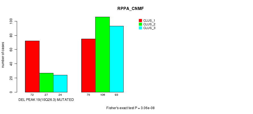 Del Peak 19(10q26.3) cnvs correlated to 'MRNA_CNMF', 'MRNA_CHIERARCHICAL', 'CN_CNMF', 'METHLYATION_CNMF', 'RPPA_CNMF', 'RPPA_CHIERARCHICAL', 'MRNASEQ_CNMF', 'MRNASEQ_CHIERARCHICAL', 'MIRSEQ_CNMF', and 'MIRSEQ_CHIERARCHICAL'.