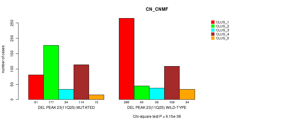 Del Peak 23(11q25) cnvs correlated to 'MRNA_CNMF', 'CN_CNMF', 'METHLYATION_CNMF', and 'MRNASEQ_CNMF'.