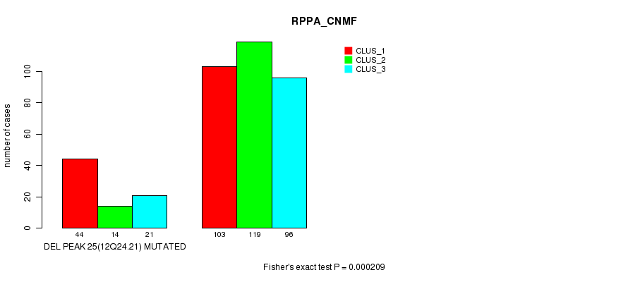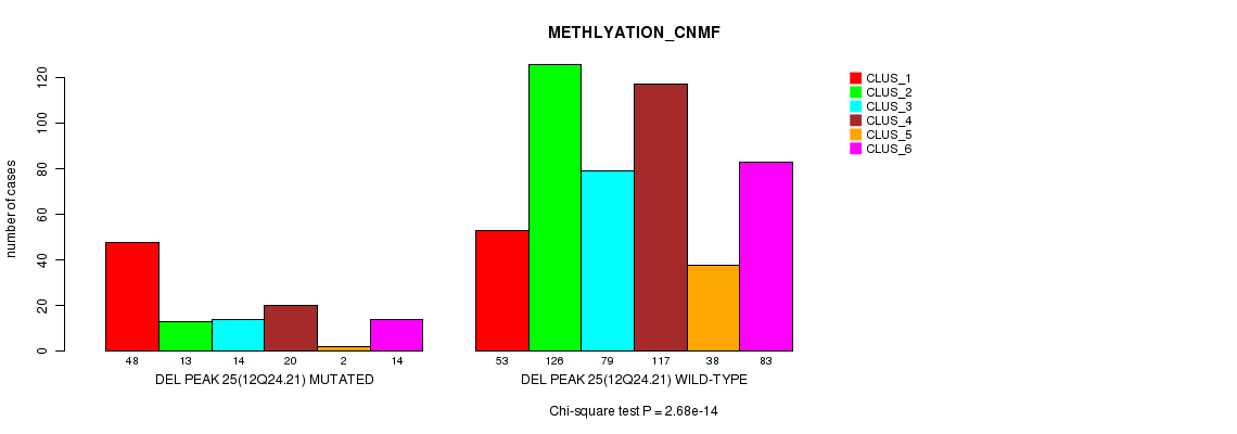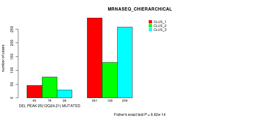 Del Peak 25(12q24.21) cnvs correlated to 'MRNA_CNMF', 'MRNA_CHIERARCHICAL', 'CN_CNMF', 'METHLYATION_CNMF', 'RPPA_CNMF', 'RPPA_CHIERARCHICAL', 'MRNASEQ_CNMF', 'MRNASEQ_CHIERARCHICAL', 'MIRSEQ_CNMF', and 'MIRSEQ_CHIERARCHICAL'.