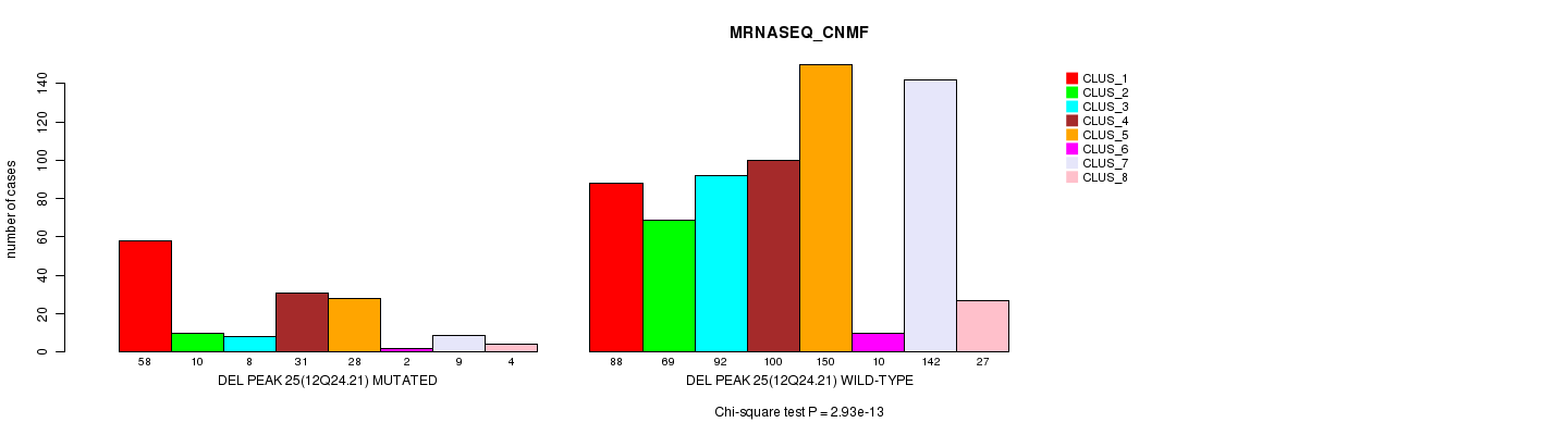 Table S473. Gene #63: 'Del Peak 36(21q11.2) mutation analysis' versus Clinical Feature #7: 'MRNASEQ_CNMF'