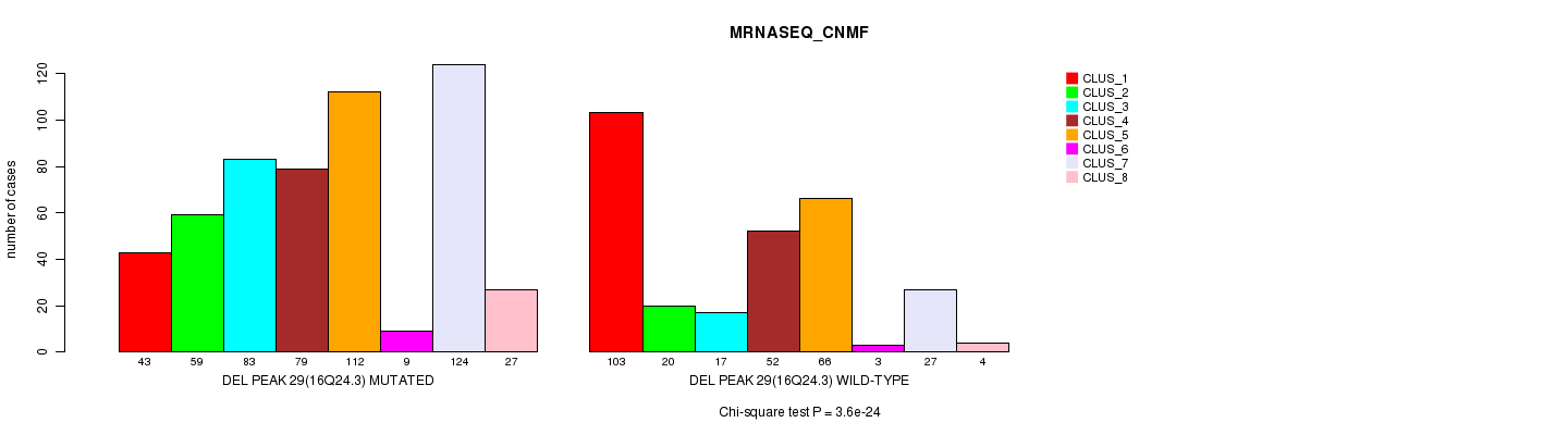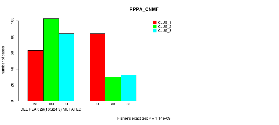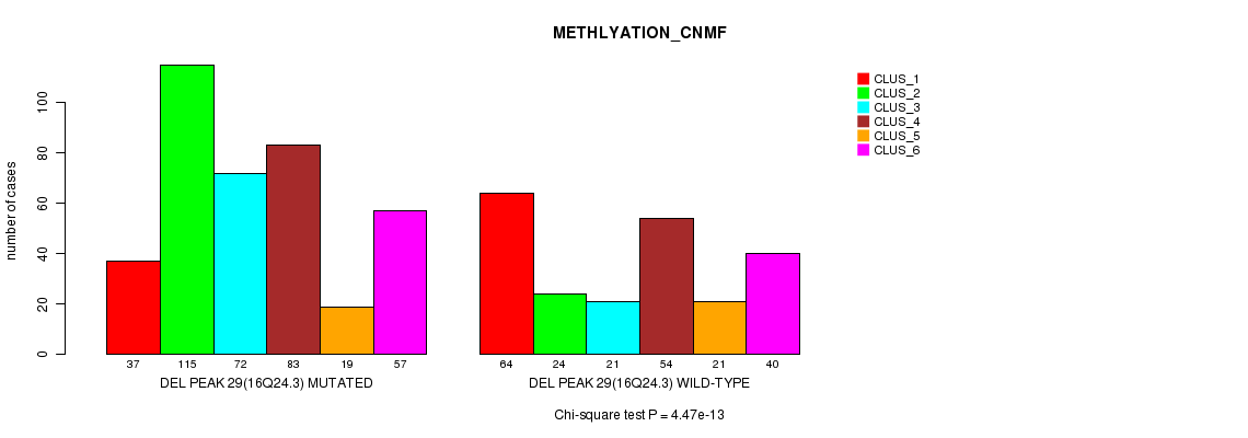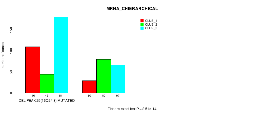 Del Peak 29(16q24.3) cnvs correlated to 'MRNA_CNMF', 'MRNA_CHIERARCHICAL', 'CN_CNMF', 'METHLYATION_CNMF', 'RPPA_CNMF', 'RPPA_CHIERARCHICAL', 'MRNASEQ_CNMF', 'MRNASEQ_CHIERARCHICAL', 'MIRSEQ_CNMF', and 'MIRSEQ_CHIERARCHICAL'.