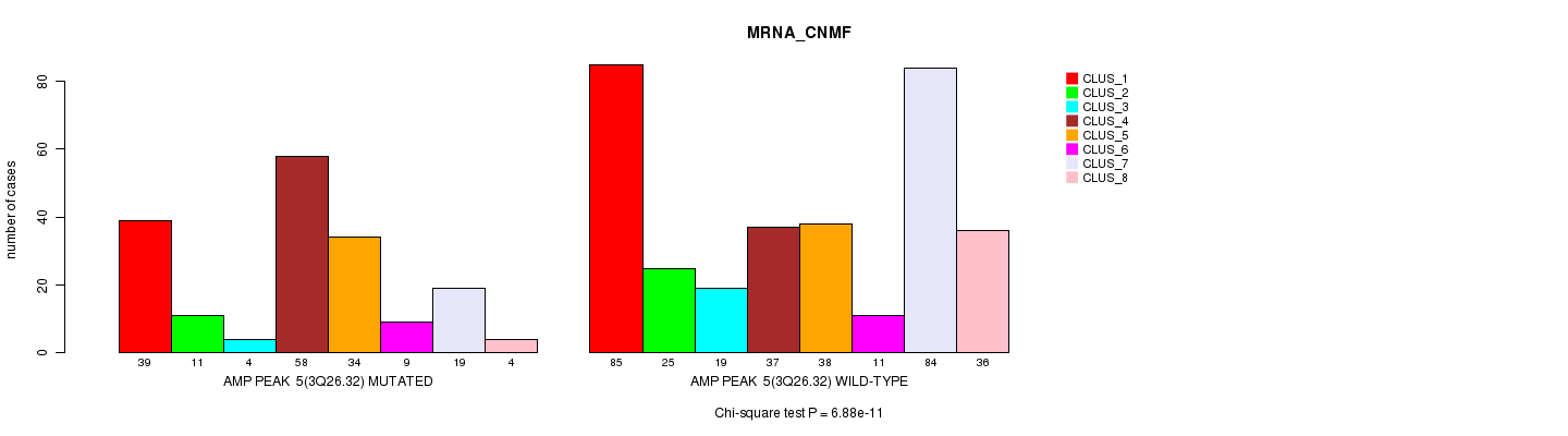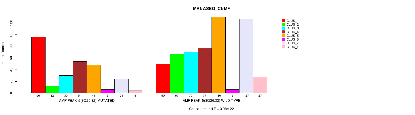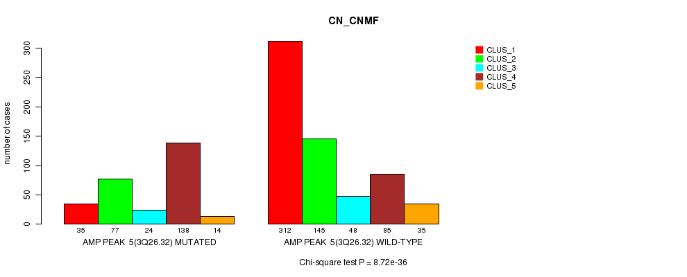 Amp Peak 5(3q26.32) cnvs correlated to 'MRNA_CNMF', 'MRNA_CHIERARCHICAL', 'CN_CNMF', 'METHLYATION_CNMF', 'RPPA_CNMF', 'RPPA_CHIERARCHICAL', 'MRNASEQ_CNMF', 'MRNASEQ_CHIERARCHICAL', 'MIRSEQ_CNMF', and 'MIRSEQ_CHIERARCHICAL'.