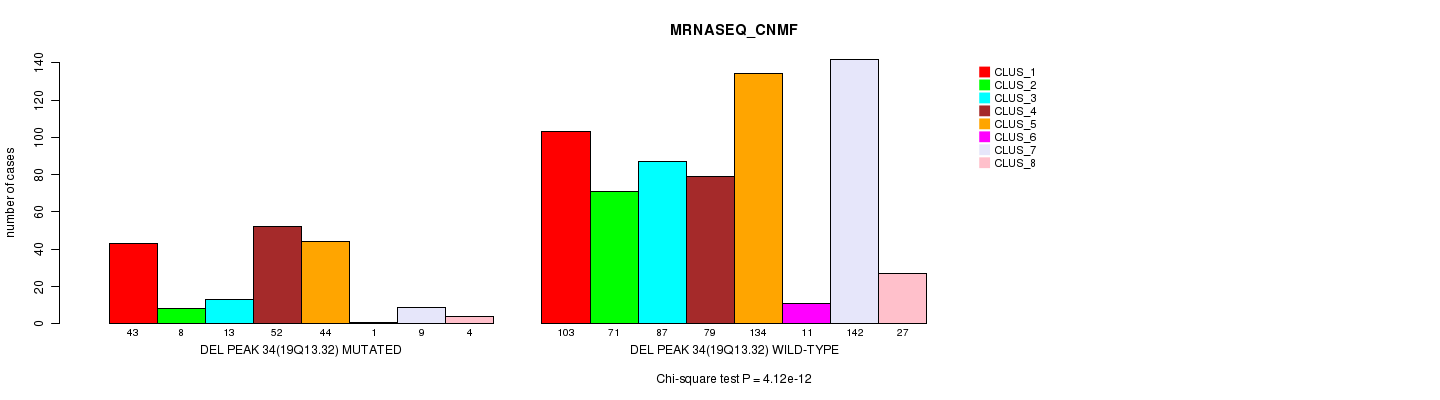 Figure S458. Get High-res Image Gene #61: 'Del Peak 34(19q13.32) mutation analysis' versus Clinical Feature #7: 'MRNASEQ_CNMF'