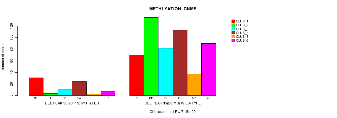 Figure S465. Get High-res Image Gene #62: 'Del Peak 35(20p13) mutation analysis' versus Clinical Feature #4: 'METHLYATION_CNMF'