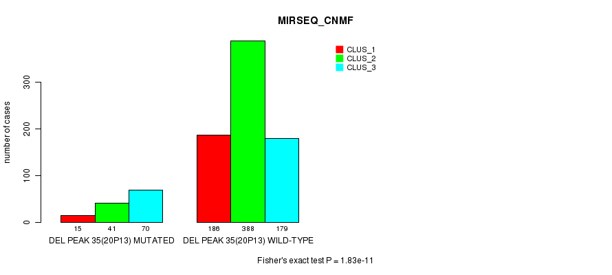 Figure S468. Get High-res Image Gene #62: 'Del Peak 35(20p13) mutation analysis' versus Clinical Feature #9: 'MIRSEQ_CNMF'