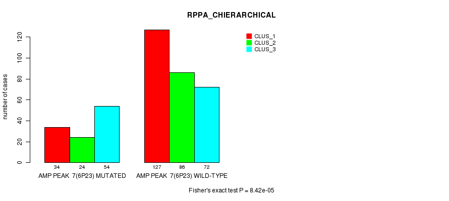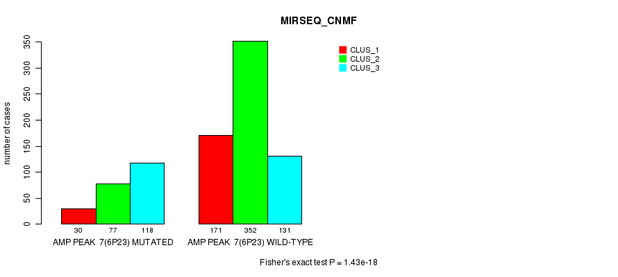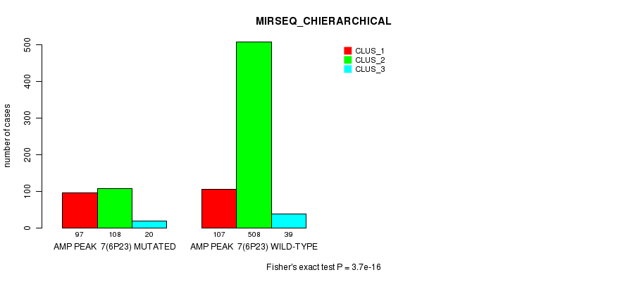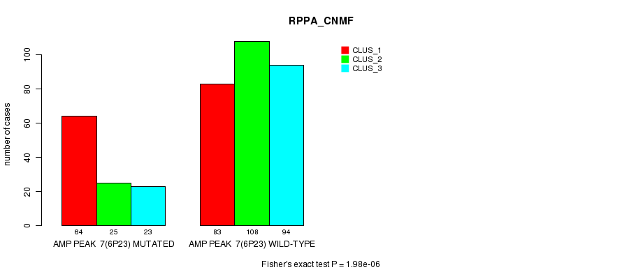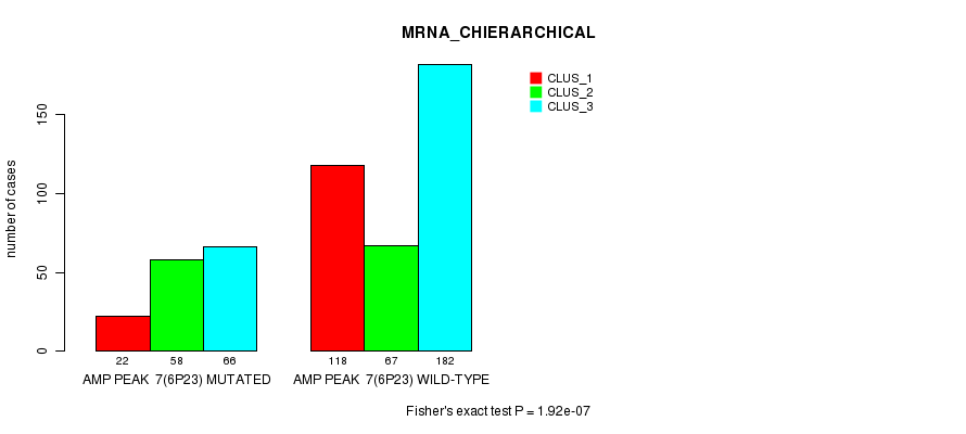 Amp Peak 7(6p23) cnvs correlated to 'MRNA_CNMF', 'MRNA_CHIERARCHICAL', 'CN_CNMF', 'METHLYATION_CNMF', 'RPPA_CNMF', 'RPPA_CHIERARCHICAL', 'MRNASEQ_CNMF', 'MRNASEQ_CHIERARCHICAL', 'MIRSEQ_CNMF', and 'MIRSEQ_CHIERARCHICAL'.