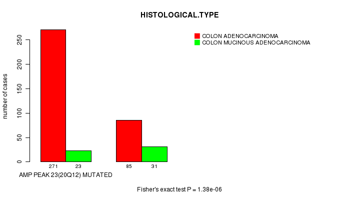 Amp Peak 23(20q12) cnv correlated to 'HISTOLOGICAL.TYPE'.