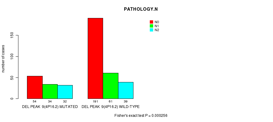 Figure S20. Get High-res Image Gene #45: 'Del Peak 21(8p11.21) mutation analysis' versus Clinical Feature #6: 'PATHOLOGY.N'