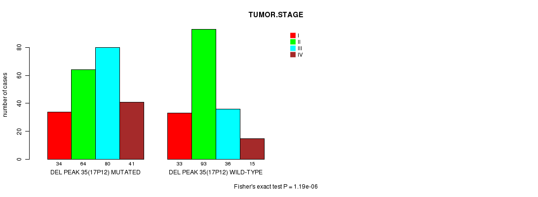 Figure S24. Get High-res Image Gene #59: 'Del Peak 35(17p12) mutation analysis' versus Clinical Feature #8: 'TUMOR.STAGE'