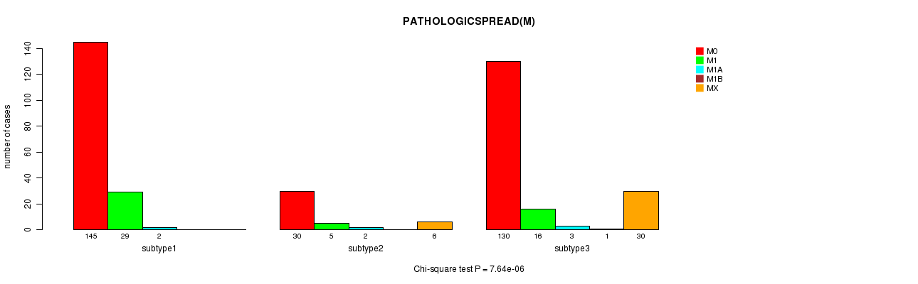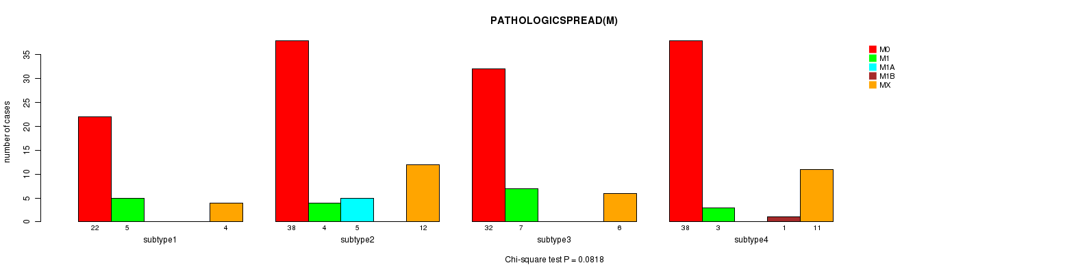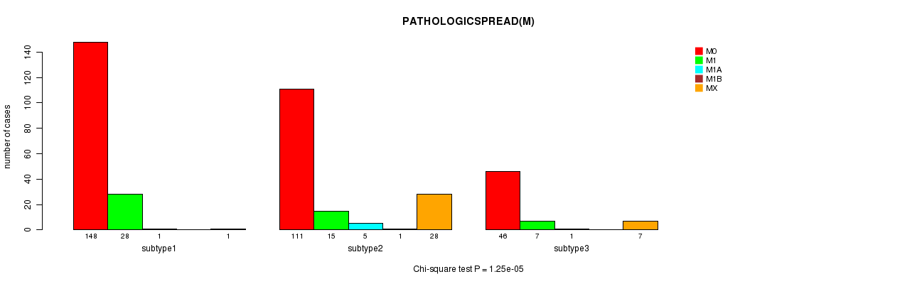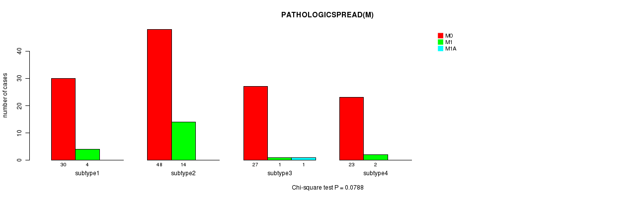 Table S112. Clustering Approach #10: 'MIRSEQ CHIERARCHICAL' versus Clinical Feature #7: 'PATHOLOGICSPREAD(M)'