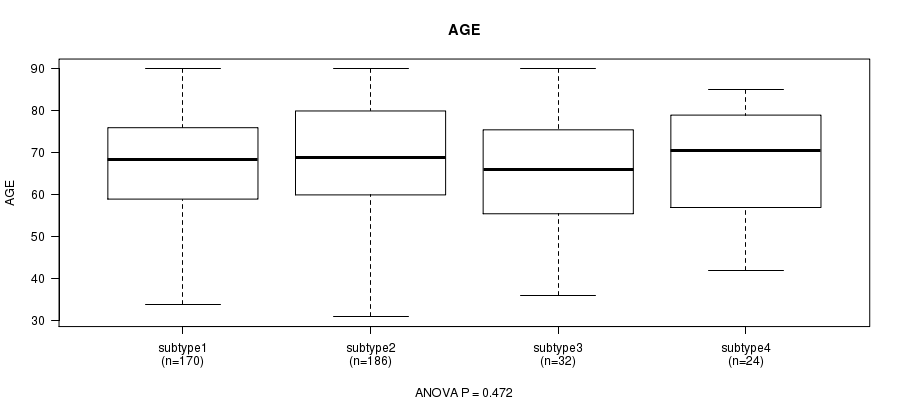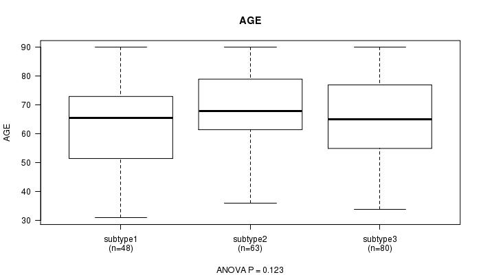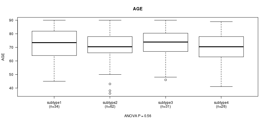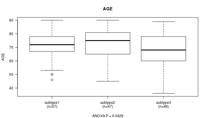 Figure S97. Get High-res Image Clustering Approach #10: 'MIRSEQ CHIERARCHICAL' versus Clinical Feature #2: 'AGE'
