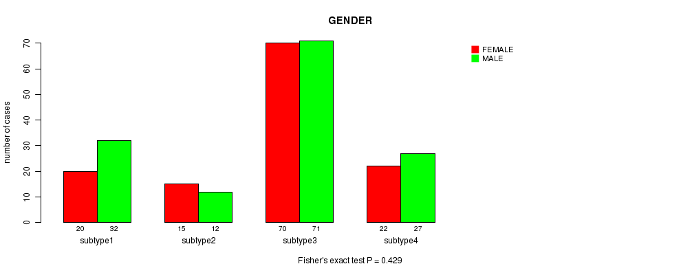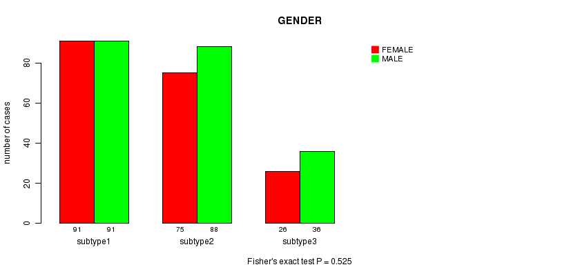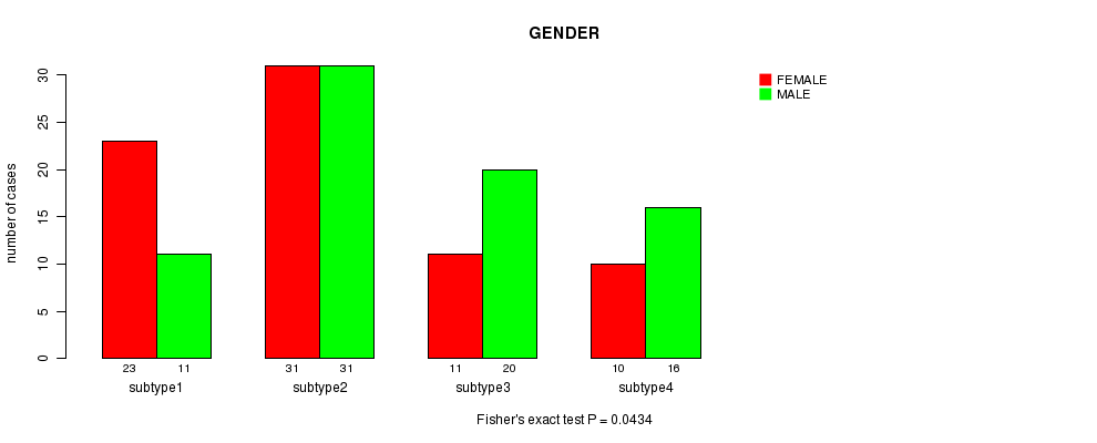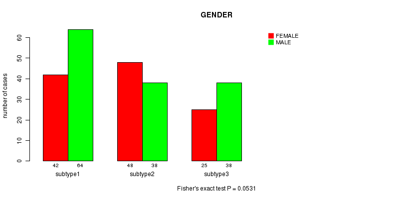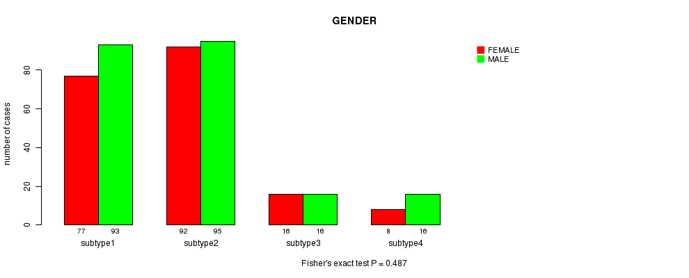 Figure S98. Get High-res Image Clustering Approach #10: 'MIRSEQ CHIERARCHICAL' versus Clinical Feature #3: 'GENDER'