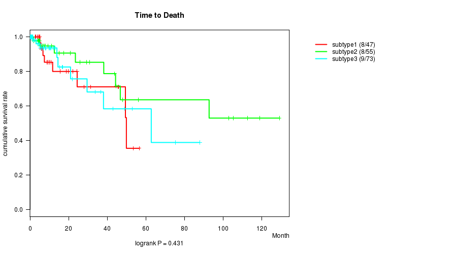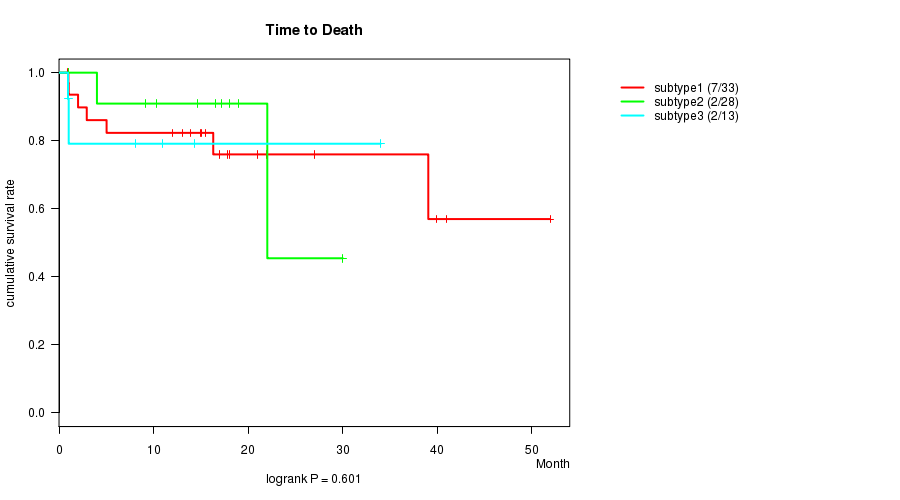 Figure S96. Get High-res Image Clustering Approach #10: 'MIRSEQ CHIERARCHICAL' versus Clinical Feature #1: 'Time to Death'