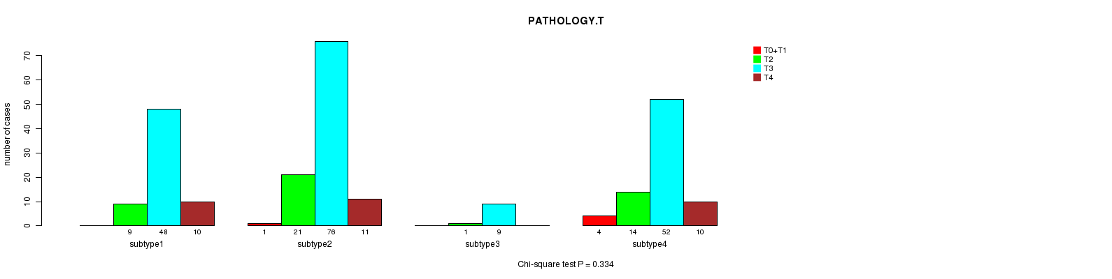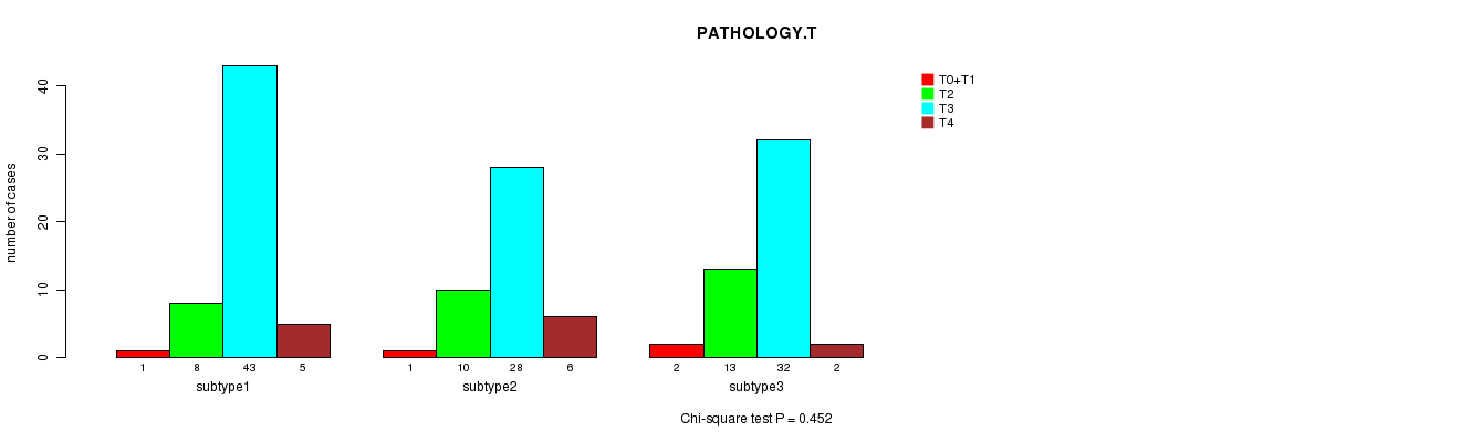 Figure S100. Get High-res Image Clustering Approach #10: 'MIRSEQ CHIERARCHICAL' versus Clinical Feature #5: 'PATHOLOGY.T'