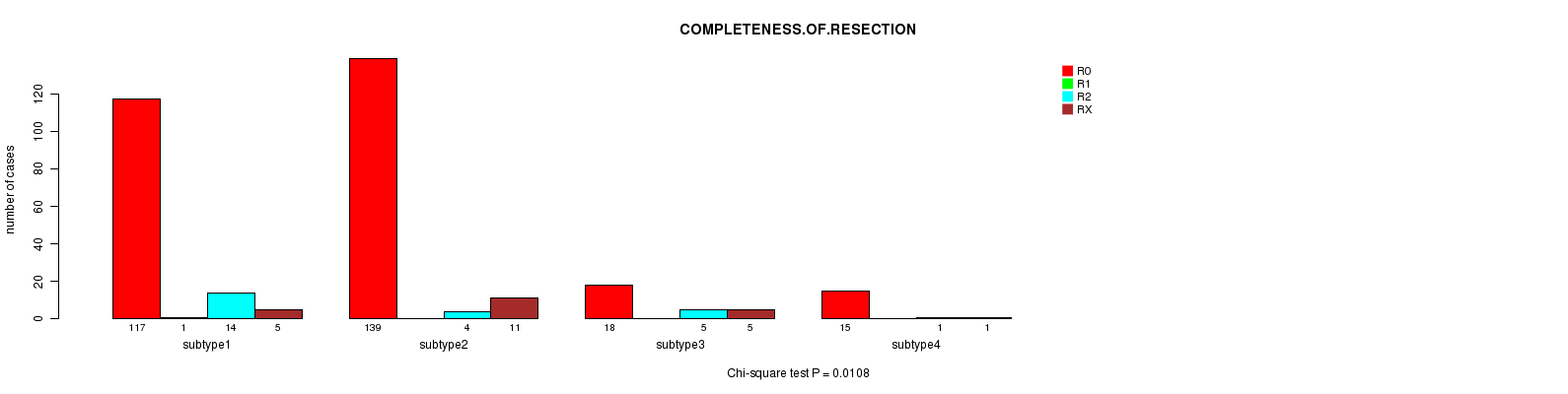 Figure S105. Get High-res Image Clustering Approach #10: 'MIRSEQ CHIERARCHICAL' versus Clinical Feature #10: 'COMPLETENESS.OF.RESECTION'