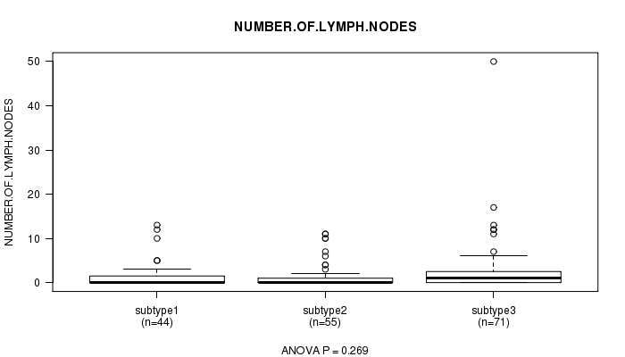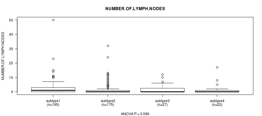 Figure S106. Get High-res Image Clustering Approach #10: 'MIRSEQ CHIERARCHICAL' versus Clinical Feature #11: 'NUMBER.OF.LYMPH.NODES'