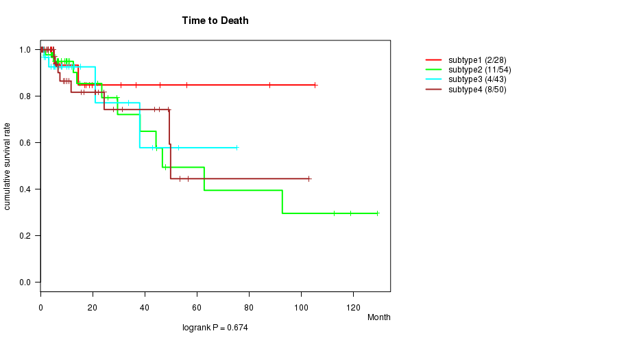 Table S106. Clustering Approach #10: 'MIRSEQ CHIERARCHICAL' versus Clinical Feature #1: 'Time to Death'