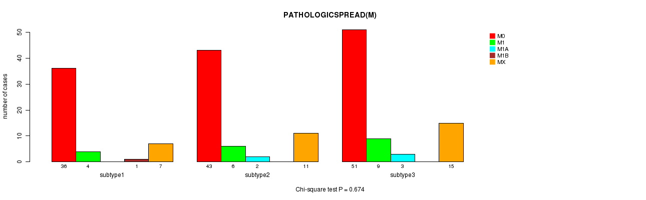 Figure S102. Get High-res Image Clustering Approach #10: 'MIRSEQ CHIERARCHICAL' versus Clinical Feature #7: 'PATHOLOGICSPREAD(M)'