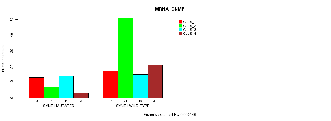 SYNE1 mutation correlated to 'MRNA_CNMF' and 'CN_CNMF'.