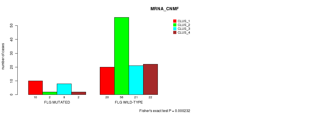 FLG mutation correlated to 'MRNA_CNMF' and 'CN_CNMF'.