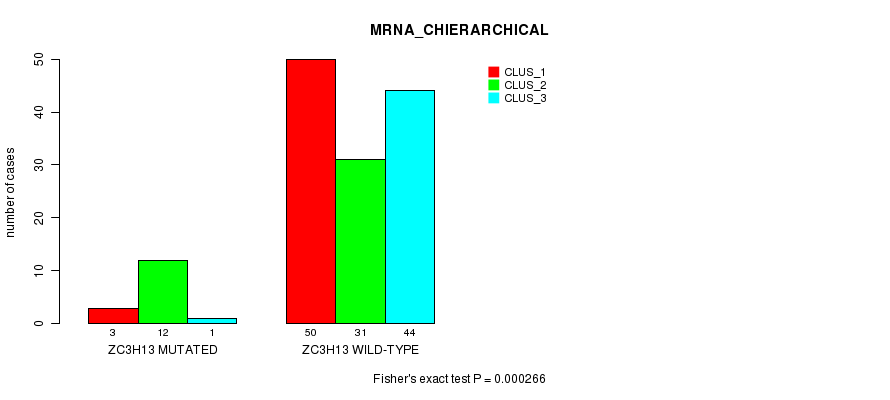Figure S10. Get High-res Image Gene #82: 'ZC3H13 MUTATION STATUS' versus Clinical Feature #2: 'MRNA_CHIERARCHICAL'