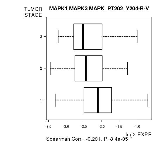 | MAPK1 MAPK3|MAPK_PT202_Y204-R-V | -0.2807 | 8.402e-05 | 0.0146 |