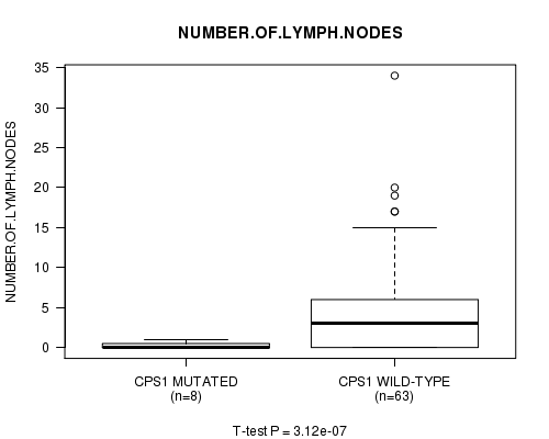 CPS1 mutation correlated to 'NUMBER.OF.LYMPH.NODES'.