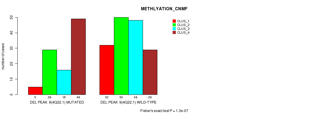 Del Peak 9(4q22.1) cnvs correlated to 'CN_CNMF', 'METHLYATION_CNMF', and 'MIRSEQ_CHIERARCHICAL'.