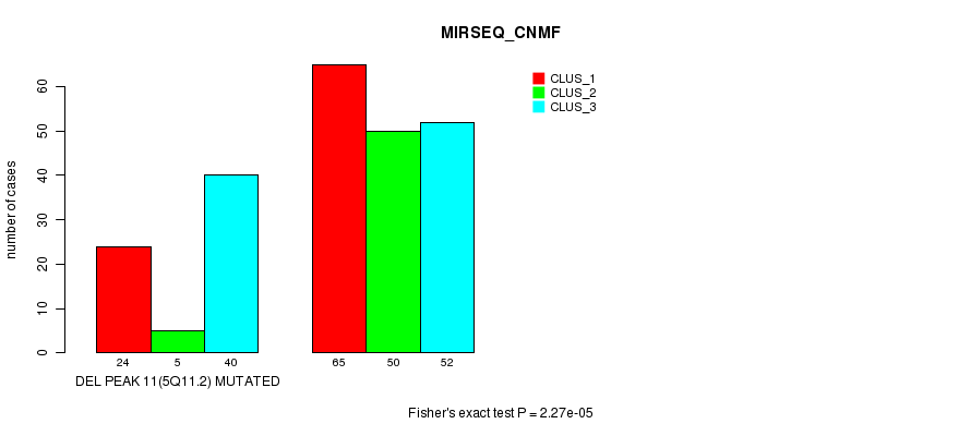 Del Peak 11(5q11.2) cnvs correlated to 'CN_CNMF', 'METHLYATION_CNMF', 'MIRSEQ_CNMF', and 'MIRSEQ_CHIERARCHICAL'.