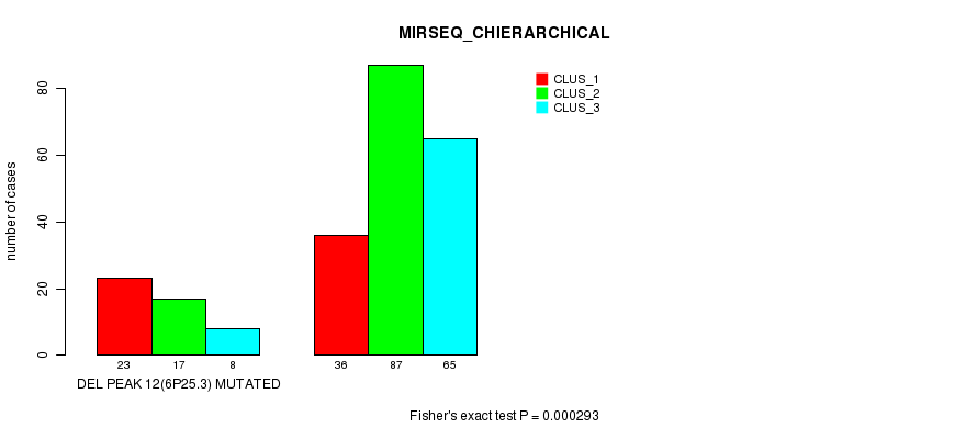 Del Peak 12(6p25.3) cnvs correlated to 'CN_CNMF' and 'MIRSEQ_CHIERARCHICAL'.